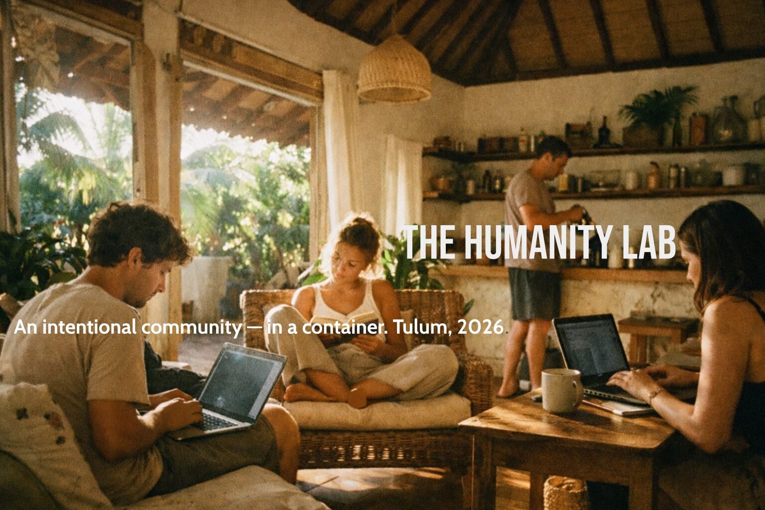 The Humanity Lab is an intentional community in a container — a small group of 4–10 people sharing a home in Tulum for 1–3 months, doing their real work and living their real lives alongside people they actually chose. It’s not a retreat, a course, or a commune. It’s a living experiment in what community actually requires, built around three principles: self-awareness, conscious communication, and collaborative decision-making. The container is the point, and everything you learn you carry home, wherever home turns out to be next.